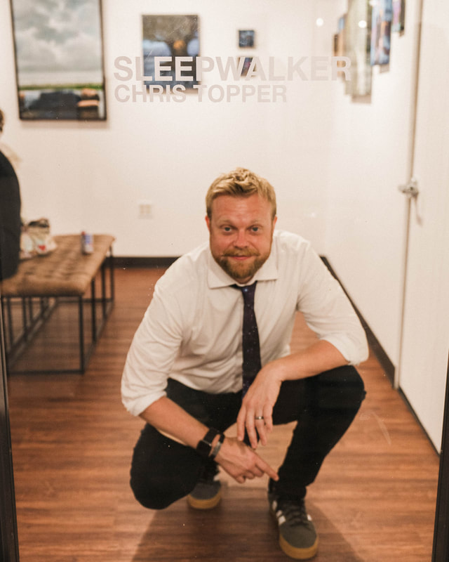 Topper has had multiple solo and group exhibitions at Brassworks Gallery in Portland, OR. His recent solo shows at the gallery include "Sleepwalker" (July 2025) and "Made from Dreams" (2024)